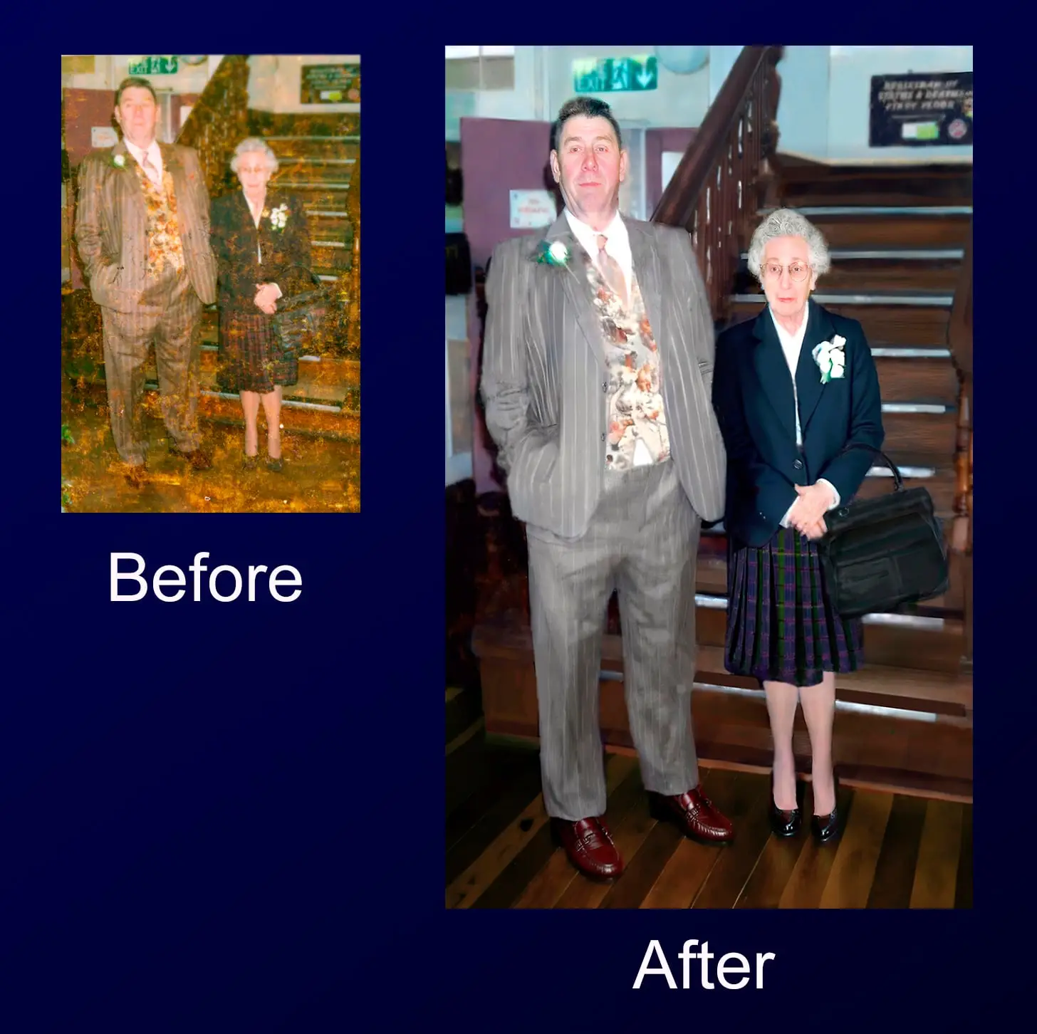 We can reverse the clock and restore the image to how it looked on the very first day it was taken and even improve the image by removing any unwanted objects or adding colour to a black and white image if so desired.